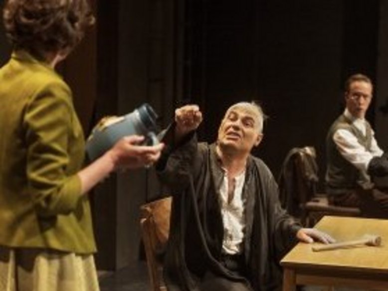 In der Rolle des Dorfrichters Adam ist Olaf Hais zu sehen, Eve spielt Julia Hell, Ruprecht Marcel Kaiser.