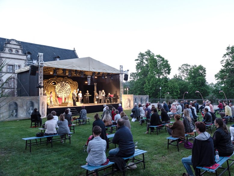Wie bereits im letzten Sommer, in dem pandemiebedingt auf kleinere Aufführungsformate gesetzt wurde, sind auch in diesem extra auf die Situation zugeschnittene Openair-Programme geplant. So erwartet das Publikum mit „Komm ins Offene“ eine vergnügliche Theatertherapie, in der das Schauspielensemble auf der Couch von Chefarzt Prof. Dr. hon. causa Karl Stillerbach (alias Steffen Mensching) Platz nehmen wird. Mit Liedern, Geschichten und Sketchen – immer am Puls der Zeit – werden sie ab dem 12. Juni openair auf der Heidecksburg dem Publikum eine „spritzige“ Frischzellenkur verabreichen.