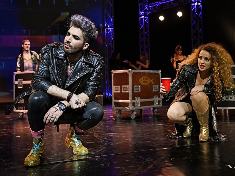 Die Inszenierung von Erik Petersen, der erstmals am Theater St. Gallen arbeitet, greift das Thema Superstar auf und zeigt den Kosmos einer zeitgenössischen Band mit ihren internen und externen Kämpfen um Erfolg und Ruhm. Momme Hinrichs (Bühne) und Torge Møller (Video) von fettFilm haben dafür eine Drehbühne mit Showtreppe, Backstage-Bereich und Projektionsflächen entworfen, die zahlreiche Assoziationen zulässt. Für die Kostüme zeichnet Anja Lichtenegger verantwortlich, für die Choreografie Sabine Arthold. Die musikalische Leitung hat Robert Paul.