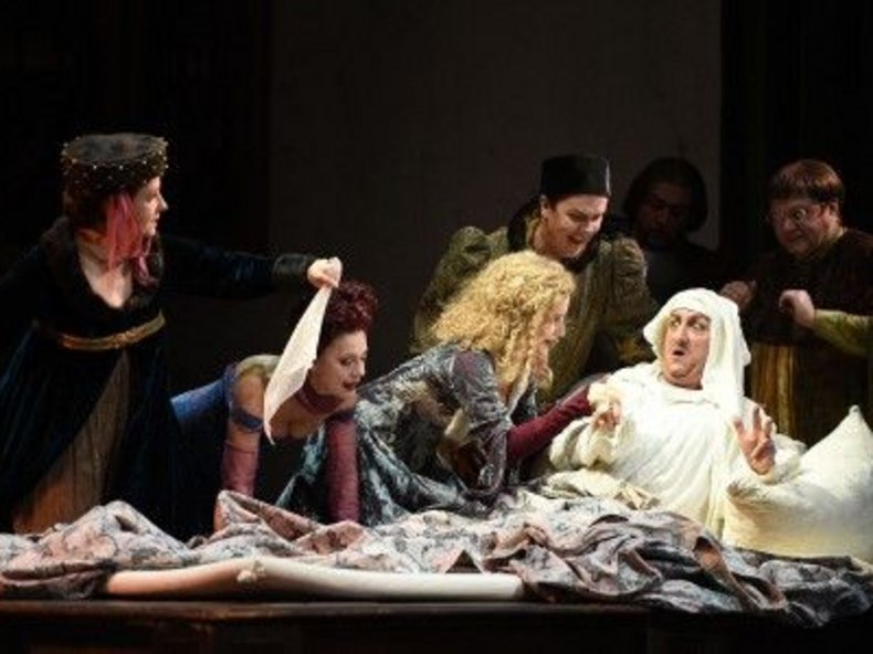 Drei inhaltlich sehr unterschiedliche Einakter hat Giacomo Puccini zu "Il trittico" zusammengefasst. Da ist zum einen "Gianni Schicchi", das in der Renaissance in Florenz spielt, sich komisch mit Erbstreitigkeiten und Testamentsschwindel im großbürgerlich-familialen Kreis auseinandersetzt und dies in bester Commedia dell arte Tradition. Da dieses Stück auch der Ausgangspunkt für Puccinis Projekt war, hat Dietrich Hilsdorf es entgegen der vorgesehenen Aufführungsreihenfolge statt ans Ende an den Anfang gestellt in seiner Inszenierung von 2003 für die Deutsche Oper am Rhein, die jetzt als Wiederaufnahme zu sehen ist. Eine ersichtlicher Grund dafür erschließt sich nicht, da jeder der Einakter ohnehin in sich abgeschlossen ist, ohne jegliche Bezugnahme auf die anderen beiden. "Suor Angelica" spielt im 17. Jahrhundert in einem Kloster, in das die adlige Angelica von ihrer Tante aufgrund eines Fehltrittes verbannt wurde. In karger Abgeschlossenheit wird unerbittlicher Gehorsam und Demut verlangt. Angelika sehnt sich nach ihrem Kind, muss aber nach Jahren ohne Besuch von seinem Tod erfahren. In einem Moment der Hoffnungslosigkeit bereitet sie sich einen Todestrunk. Auf einem Frachtschiff Anfang des 20. Jahrhunderts auf der Seine bei Paris ermordet Michele in "Il tabbaro" aus Eifersucht den Liebhaber seiner Frau.