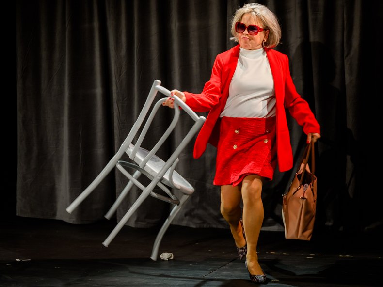 Der exzentrische Ex-Ehemann verursacht ihr Alpträume, als er plötzlich wieder auftritt und sie als "Oma" feiert. Sogar Hitlers Lieblingsfilm "Vom Winde verweht" wird erwähnt. Da steigert sich auch das Tempo dieser gelungenen Aufführung, die kaum Utensilien besitzt. Ein Stuhl im Lichtkegel bildet den Mittelpunkt auf der relativ kahlen Bühne von Niko Büchel, die sich aber rasch mit Leben füllt. Und dann gibt es da noch den Hund Pudding, der manchmal auch winselt. Und der jüngere Freund hebt immer wieder die seelische Stimmung: "Er und ich ist Glück!" Die Autorin Susanne Felicitas Wolf wurde in Mainz geboren und lebt jetzt in Wien. Sie besitzt eine scharfe Beobachtungsgabe und seziert gesellschaftliche Entwicklungen. Aber immer mit Humor.