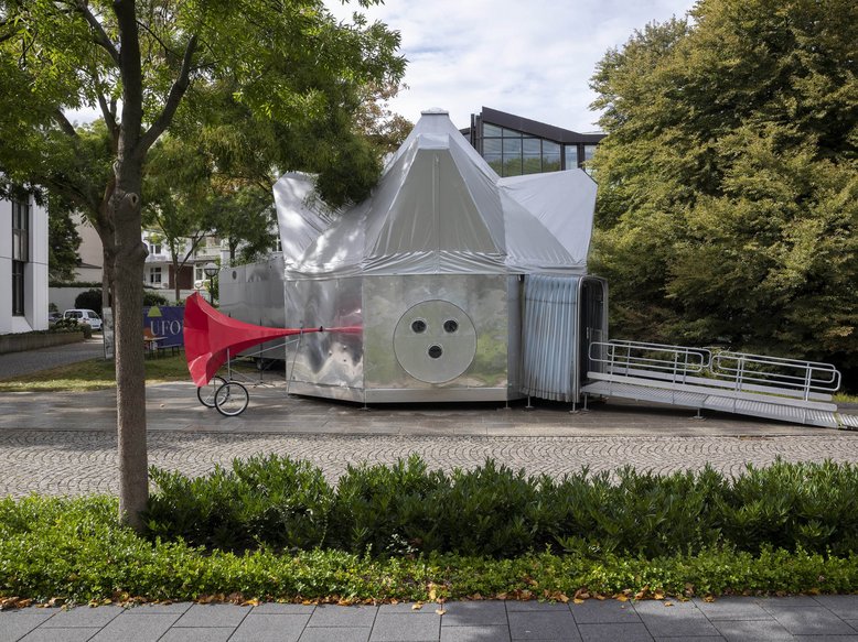 Erschreckende und grauenvolle Bilder kann man aber nur erahnen, trotzdem bleibt immer wieder das Gefühl konstanter Bedrohung. Außerdem ist mit dem Kopfhörer auch Sirenengeheul zu hören. Die Zuschauer sind zunächst außerhalb des Theaters im großen Park vor dem Staatstheater unterwegs, um dann in ein großes Parkhaus hinabzutauchen. Eine interessante Idee, denn sie werden von der Schauspielerin Gabriele Hintermaier angeleitet. Die Kriegswirklichkeit holt den Zuschauer wiederholt ein, lässt ihn nicht mehr los. Die Berichte aus ukrainischen Städten vermischen sich hier in beklemmender Weise mit den Erzählungen verzweifelter Menschen, die ihre Heimat verlassen mussten.