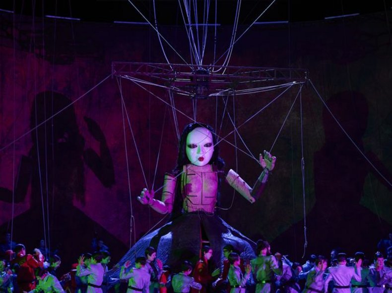 In »Turandot« verwendet Puccini ein bis dahin unbekanntes Farbspektrum fernöstlicher Melodien im Orchester und spürt den Klängen des alten chinesischen Kaiserreichs nach. Dem begegnet der Regisseur Philipp Stölzl, der neben Musik- und Sprechtheater vor allem Spielfilme, Werbespots und Musikvideos inszeniert, mit einer von Schwarzer Romantik gezeichneten surrealen Bildsprache.