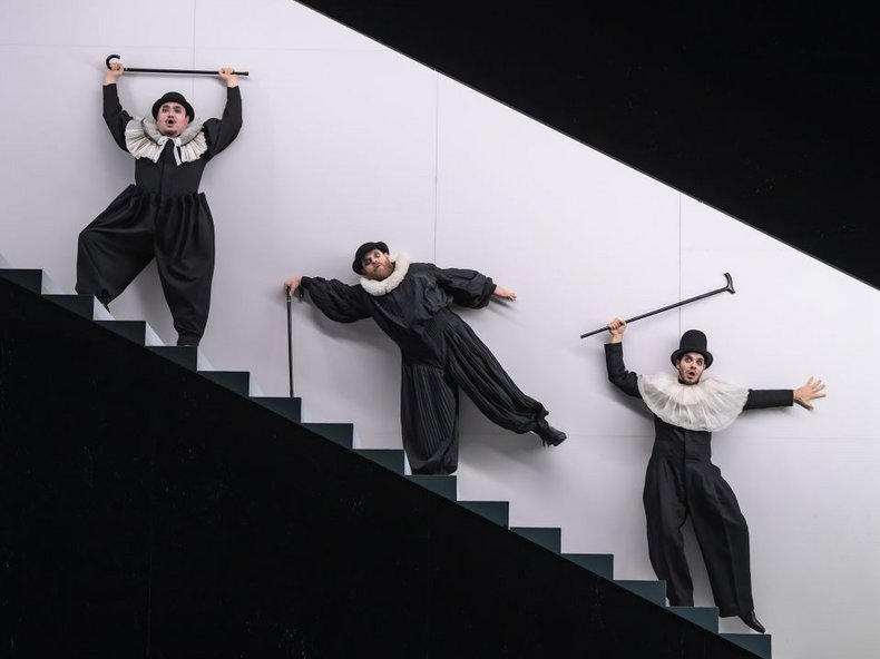Hinter der mörderischen Brutalität von Turandots Gesetz und ihrer eiskalten Ablehnung aller Anwärter versteckt sich ein tiefes transgenerationales Trauma. Die unlösbaren Aufgaben dienen alleine dem Selbstschutz: Eine Vorfahrin wurde von ihrem Gatten brutal misshandelt und ermordet. Die Inszenierung von Jakob Peters-Messer untersucht Puccinis Märchenoper auf diese tiefenpsychologische Ursache und macht gleichzeitig die eingeschriebene Ambivalenz aus Tragödie und grotesker Komik sichtbar.