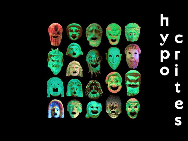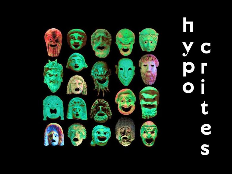 Die Zuschauerinnen und Zuschauer werden Teil einer Suche nach den „ewigen Jagdgründen“ des Theaters: Spielerisch erkundet HYPOCRITES die Widersprüche Natürlichkeit vs. Künstlichkeit und Schein vs. Sein und rückt den beschriebenen vermeintlichen Widerspruch ganz offen, „ungeschminkt“ ins Zentrum einer Aufführung und der Diskussion im Rahmen des Social Media Videoblogs HYPOCRITES TV.
