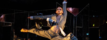 Zwei Sphinxen, ein Berg, Marco Polo, ein LKW-Fahrer und drei Sexarbeiterinnen an einer Autobahnraststätte am Rande eines Grenzübergangs. Wintersportler:innen auf der Piste und im Stau, ein Chor, ein Bote – und ER. Und ein ANDERER ER. Marco Polo geht in die eine Richtung, in den Nahen Osten, und ER in die andere, Richtung Europa, ein paar Jahrhunderte versetzt.