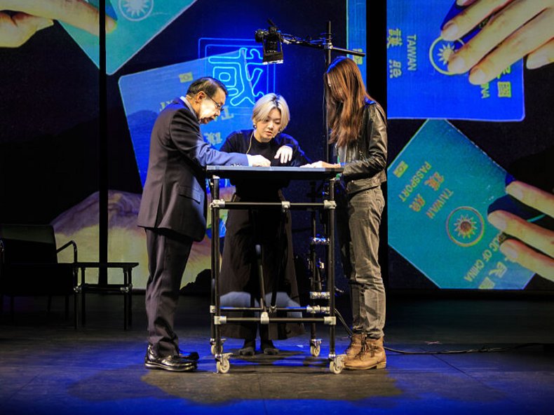 Gemeinsam mit taiwanesischen Künstler*innen hat Kaegi im Rahmen einer siebenwöchigen Recherche-Residenz im Nationaltheater Taipeh Diplomatinnen, Geologen, Techniker aus der Halbleiterindustrie, Politikerinnen und Geschäftsleute befragt. In „Dies ist keine Botschaft“ stehen nun drei taiwanesische „Diplomat*innen“ auf der Bühne, die unterschiedlicher nicht sein könnten: