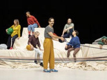 „Fäden“ entsteht in einer fragilen, unterbrochenen und aufgeschobenen Gegenwart, mit der Erinnerung an das Davor und einer Ahnung des Danach. Aus diesem schwebenden Moment heraus entwickelt die Choreografin und Autorin Ivana Müller gemeinsam mit den Schauspieler*innen und Tänzer*innen ein Geflecht aus Bewegungen, Gedanken und Bildern, das den unausweichlichen Prozess der vergehenden Zeit reflektiert.