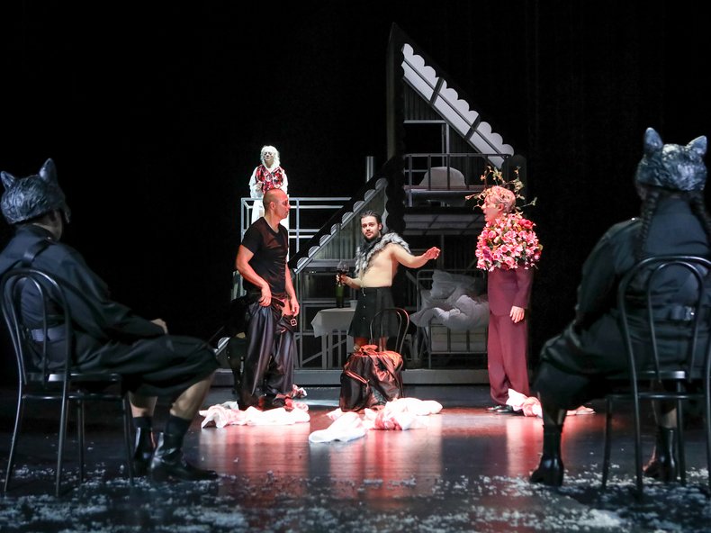 In Pidor und der Wolf bildet die Geschichte von Prokofjews berühmtem Musikmärchen die Folie, um die schmerzhaft-aktuelle Geschichte der Verfolgung queerer Menschen in Tschetschenien seit 2017 als düster-auswegloses und doch poetisches Märchen zu erzählen. Aus der Sicht des achtjährigen Sohnes entfaltet sich ein gewaltvolles Machtsystem, das jegliche Abweichung perfide bestraft und aus dem es kein Entkommen zu geben scheint.