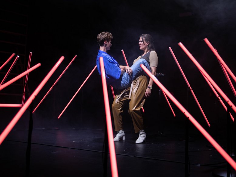 „Schleifpunkt“ ist ein atmosphärisch dichtes Stück der leisen (Zwischen-)Töne, das sensible Porträt einer Frau am Scheideweg. Geschrieben wurde es von der Schweizer Autorin Maria Ursprung im Rahmen der Werkstatt für szenisches Schreiben Dramenprozessor 2018/19 in Zürich. Marie Bues, die u. a. Co-Leiterin des Theaters Rampe in Stuttgart ist und sich vor allem mit zeitgenössischen Stücken als Regisseurin einen Namen gemacht hat, inszeniert das Kammerspiel. Das Stück wurde für die Lange Nacht der Autor_innen in Berlin als eines von drei Stücken aus mehr als 100 Einsendungen von einer dreiköpfigen Jury – Thea Dorn, Nina Hoss und David Tushingham – ausgewählt. Es sollte in der Grazer Inszenierung im Juni 2020 bei den Autorentheatertagen in den Kammerspielen des Deutschen Theaters Berlin zur Uraufführung kommen und feiert seine Premiere nun am Schauspielhaus Graz.