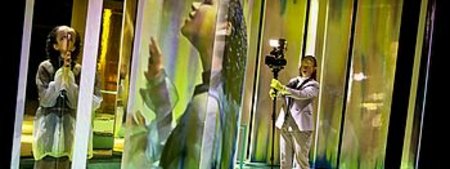 Videoprojektionen und Sound kreieren eine Licht- und Bild-Landschaft, die sich aus Archivmaterial, Originaltonaufnahmen, neuen Interviews sowie assoziativen Bildern zusammensetzt und das Bühnengeschehen auf einer abstrahierenden Ebene erweitert. Der Höhepunkt der Performance ist angelehnt an die Politischen Nachtgebete der „Frauen für den Frieden" in der Kirche, bei denen Teilnehmer:innen öffentlich politische und gesellschaftliche Zustände kritisieren in diesem einzigen etwas geschützten öffentlichen Raum für regimekritische Äußerungen in der DDR.