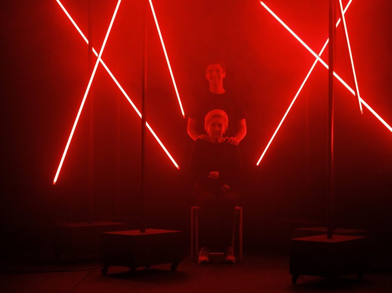 Diese beiden jedenfalls begegnen einander in immer neuen Spiel- oder Versuchsanordnungen. Mutter und Sohn, Nachbarin und Nachbar, Großmutter und Enkel, Patientin und Pfleger… ja, sie könnten tatsächlich alles füreinander sein, die Verhältnisse sind unklar wie die sich immer wieder verschiebenden Machtverhältnisse. Ist die alte Frau angewiesen auf den jungen Mann, oder spielt sie doch nur mit ihm?!