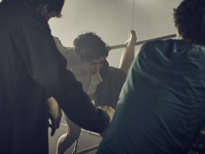 Choreographie Jasmine Ellis (Kanada/Deutschland) // Tanz Yael Cibulski (Israel), Evelyne Rossie (Belgien), Luca Cacitti (Italien), Lukas Malkowski (Kanada) // Live-Musik Lukas Bamesreiter, Ralph Heidel, Maximilian Hirning // Dramaturgie Martina Missel // Kostüme Sarah Kaldewey ATELIER KALDEWEY // Bühne Nicola Missel // Fotos Ray Demski // Produktionsleitung Theresa Schlichtherle //
