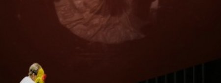 Dann wird auf Umwegen in den Tanzsaal geführt. Auf der Bühne befindet sich nichts, nur vom Schnürboden hängen einige überdimensionale Wollstränge und Webstoffe in Rottönen herab. Langsam bewegen sich die Performerinnen in Formation auf der Bühne um dann ebenso kraftvoll aufzustampfen. Ihr Auftreten ist von natürlichem Selbstbewusstsein geprägt. Manchmal drängen sich Assoziationen an spirituelle Rituale auf.