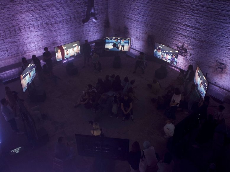 Von einer noch stärkeren Wirkungskraft ist allerdings die Choreografie "Via" des französisch-marokkanischen Choreografen Fouad Boussouf, der die rot-blaue und gelb-blaue Bühne gemeinsam mit dem Installationskünstler Ugo Rondinone entworfen hat. Dabei spielt ein unglaublich vibrierender Rhythmus eine überragende Rolle. Das Farbspektrum der warmen Erde Afrikas korrespondiert mit dem urbanen Track des Street Dance. Hip-Hop und zeitgenössischer Tanz entfalten so eine geradezu magische Wirkungskraft. Explosiv und hypnotisch zugleich kann man diese einfallsreiche Performance nennen, die neue Welten des tänzerischen Ausdrucks eröffnet. Auch Nouveau Cirque und die traditionelle Folklore des arabischen Tanzes kommen nicht zu kurz. Alles flimmert und flirrt vor den Augen der gebannten Zuschauer, die in fremde Welten entführt werden. Seit 2022 leitet Boussouf das Centre Choreographique in Le Havre. Jubel, frenetischer Schlussapplaus.