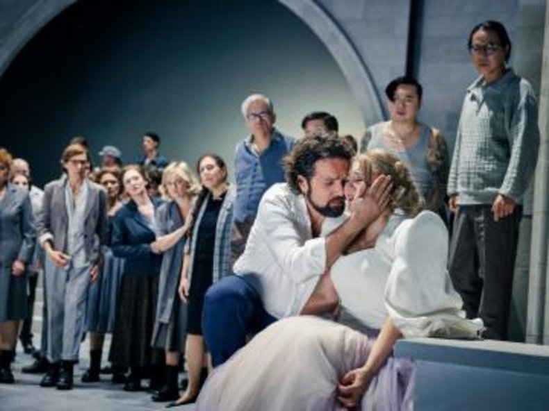 Im ersten Akt begegnen dem Publikum schroffe Holzflächen, es handelt sich um ein zerstörtes Parlament oder einen Gerichtssaal in Brabant. Das Land versinkt im Chaos. Telramund und Ortrud versuchen durch einen Staatsstreich die Macht an sich zu reissen, außenpolitisch droht sogar ein Krieg. Auffallend ist bei Manuel Schmitts Inszenierung der Hang zum Monumentalen und Überdimensionalen, was insbesondere bei der Auseinandersetzung zwischen Elsa und Lohengrin packend zum Vorschein kommt. Die beiden Bühnenbilder im zweiten und dritten Akt überzeugen den Zuschauer übrigens mehr als der erste. Als die Beziehung des Paares auseinanderbricht, zerfällt auch das Bühnenbild und es bricht plötzlich Nacht herein. Zitiert wird in dieser Inszenierung auch immer wieder Winifred Wagner, die sich hinsichtlich der Faszination äussert, die von Hitler ausging. Zum Glück zitiert Schmitt im Programmheft aber auch Hannah Arendt und beleuchtet das Geschehen damit von einer anderen, jüdischen Seite: "Das Böse ist immer nur extrem, aber niemals radikal, es hat keine Tiefe, keine Dämonie." Tief aber und radikal sei immer nur das Gute. Diese wichtigen Sätze gelten auch für Richard Wagners "Lohengrin", der Grenzen überwindet. Denn Wagner sprach sich gerade als Revolutionär gegen die Verführung der Massen durch den Einzelnen aus und propagierte die Freiheit. Das haben die Nationalsozialisten wohl nie begriffen und ihn dennoch für sich vereinnahmt. Wichtig ist jedoch, dass das Theater dieses Problem thematisiert. Und dies ist Manuel Schmitt mit seiner differenzierten Inszenierung durchaus gelungen. Er hinterfragt jede Szene. Bei ihm ist Ortrud auch nicht nur böse, sie erscheint zum Schluss als gebrochene Frau, die den Erben von Brabant krampfhaft in ihren Armen hält. Im Mittelpunkt der Inszenierung scheint hier auch Wagners Grab zu stehen, um das sich die entscheidenden Szenen abspielen. Lohengrin ist für Schmitt ein Mensch, der beauftragt ist, Gutes zu tun, für andere in Not einzustehen und Hilfe zu leisten. Alle Menschen sind hier Teil der Gralsgesellschaft und es wird ein großer Bogen zu "Parsifal" gespannt.