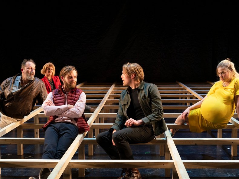 Die Familie des Unternehmers Egon Krause scheint für die Zukunft gut gerüstet. Krause und seine Frau Annemarie haben sich aus dem Geschäftsleben zurückgezogen. Die Firma, mittlerweile geführt von Schwiegersohn Thomas, sichert ein komfortables Einkommen für alle. Thomas und seine Frau Martha, Krauses Tochter aus erster Ehe, erwarten ein Kind, dessen Geburt unmittelbar bevorsteht. Marthas Schwester Helene ist extra aus der Stadt in die heimatliche Provinz gekommen, um das Ereignis nicht zu verpassen. Und plötzlich steht da noch Alfred auf der Terrasse, Thomas‘ Freund aus Studientagen, der sich wundert, dass Thomas mit rechtspopulistischen Parolen Lokalpolitik betreibt. Doch die Familienidylle ist trügerisch.