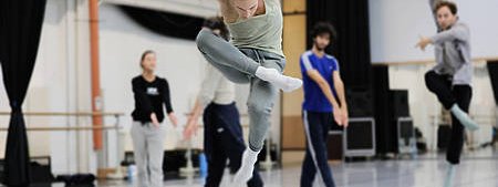 Quintett (1993) ist ein Meilenstein des zeitgenössischen Balletts von William Forsythe, in dem die Tänzer*innen zu Gavin Bryars´ Musik einen nahtlosen Fluss von Solos, Duetten und Trios in Gang setzen. Das Werk von Forsythe besticht durch seine freudige Komplexität – wie ein reißender Strom, der in seiner kraftvollen Vision ein Bewusstsein des eigenen Endes beinhaltet.