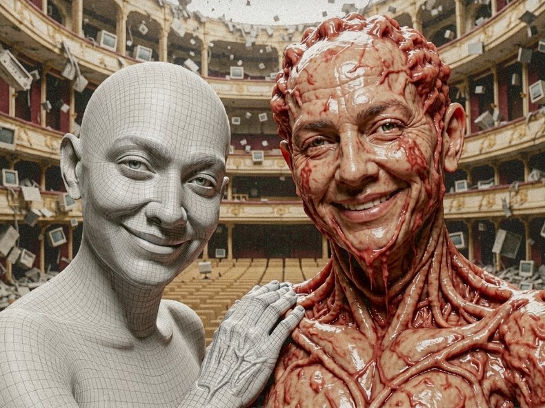 Angekommen in unserer Gegenwart scheint alles simulierbar: die Bewegungen von Elementarteilchen und Planeten, globale Wettersysteme, Sprache, Verkehrsflüsse, Kaufverhalten, Materialermüdung, Schlafmuster und Krieg in jeglicher Ausprägung. So stößt er an die gegenwärtige Form einer alten Skepsis am Status der Wirklichkeit. Und wo ließe sich diese Frage nach Realität oder Simulation, nach Schein oder Sein, besser beantworten als im Theater!