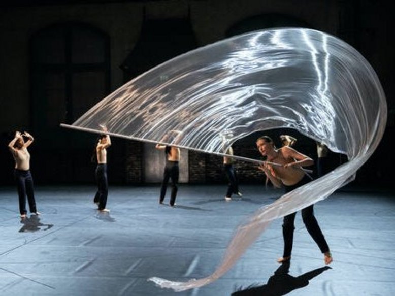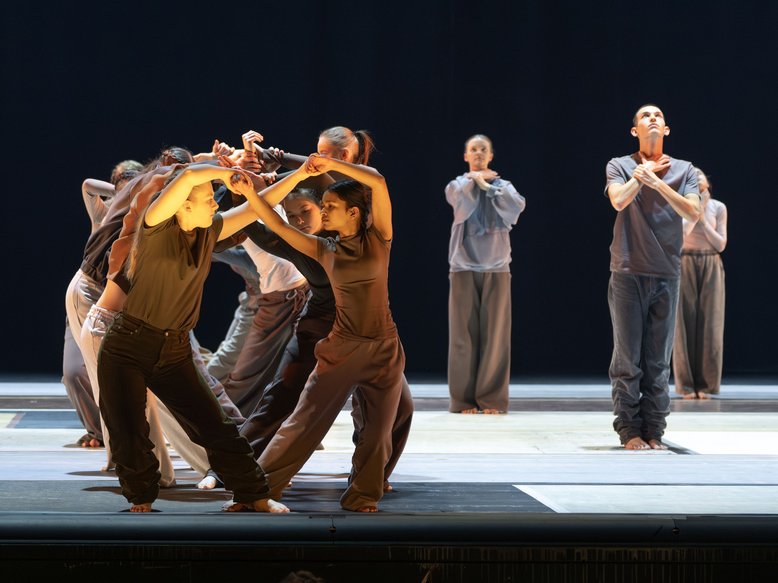 In Choreographie und Bühne von Marcos Morau besticht die erste Arbeit mit dem Nederlands Dans Theater vor allem mit den Gruppen-Effekten in langen, dunklen Röcken und bestickten Blusen in…