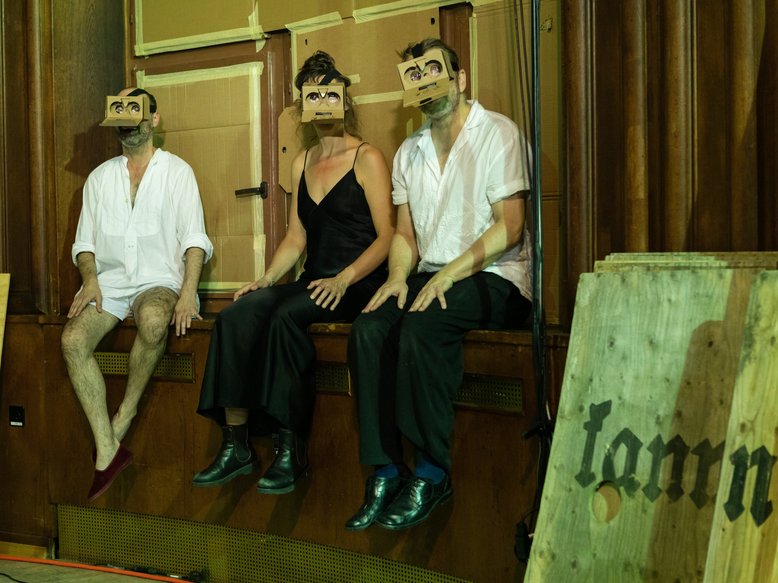 In der Inszenierung von Thom Luz befinden sich hier vier Menschen in einem leeren und imaginären Raum, der von Stühlen übersät ist. Sie können ihm nicht mehr entkommen, sind scheinbar gefangen. "Das…